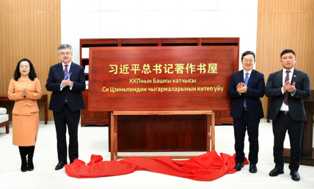 BICHKEK -- Le 28 janvier, une Maison des œuvres dédiée aux œuvres du Secrétaire général du Comité central du PCC, Xi Jinping, a été inaugurée à Bichkek, capitale du Kirghizistan. Gao Xiang, président de l'Académie des Sciences sociales de Chine (ASSC), et Arslan Koichiev, secrétaire d'État du Kirghizistan, ont chacun prononcé un discours lors de la cérémonie et ont dévoilé conjointement la plaque de cette Maison. Parmi les éminents invités figuraient Karim Khandzheza, vice-président du Parlement du Kirghizistan ; Liu Jiangping, ambassadrice de Chine au Kirghizistan ; Gulzat Isamatova, ministre des Sciences, de l'Enseignement supérieur et de l'Innovation du Kirghizistan ; et Dogdurbek Chontoev, recteur de l'Université nationale du Kirghizistan (UNK).